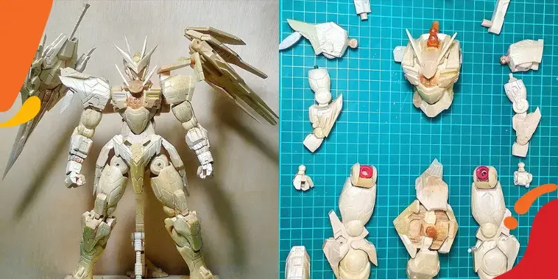 Lo bayangin aja, Gundam kan perintilannya banyak banget tuh, udah gitu keliatannya kecil-kecil dan ribet banget. Kalo dirakit pake potongan yang udah jadi, satu action figure aja bisa lama banget proses pengerjaannya. Nah, kalo Gundam berbahan kayu ini, pengeraannya bisa makan waktu beberapa minggu buat selesai. Kebayang kan, betapa sabarnya si perajin ini?