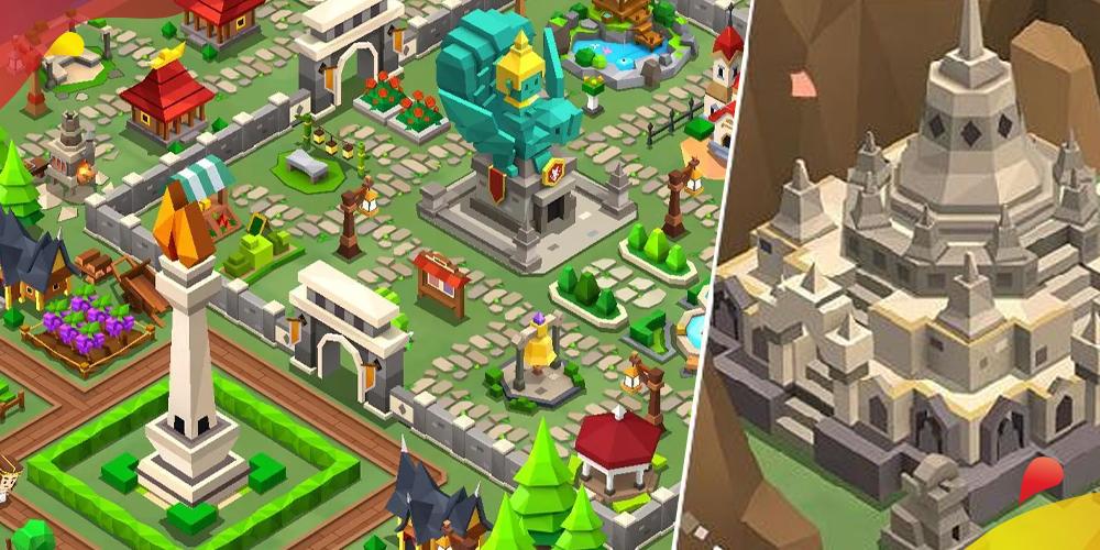 Terus, ada juga Fantasy Town, game simulasi pertanian yang bawa karakter-karakter cerita rakyat Sunda kayak Kabayan sama Nyi Iteung, bahkan Nyi Roro Kidul juga ada. Nggak cuma karakter, landmark kayak Candi Borobudur sama Monas juga nongol di sini.