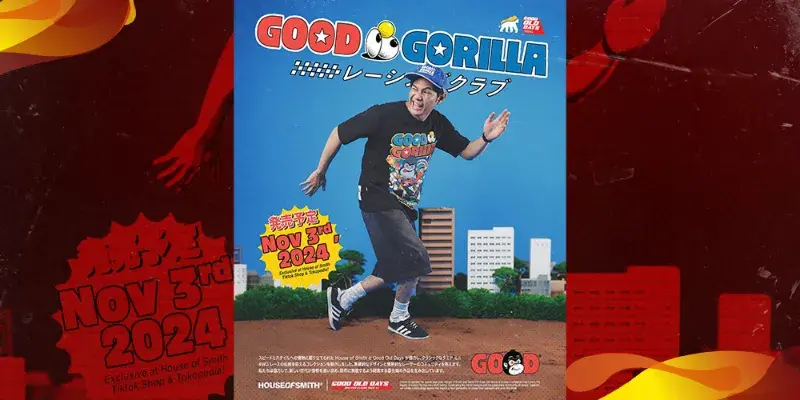 Nah, sekarang kita masuk ke highlight-nya. Koleksi terbaru ini dikasih nama "Good Gorilla Racing Club"—dan ini tuh pure representasi dunia Tamiya yang ikonik banget. Kalo Lo dulu pernah ikut lomba Tamiya, ngumpulin spare parts, atau cuman sekadar suka nonton balapannya, koleksi ini wajib banget sih Lo lirik.