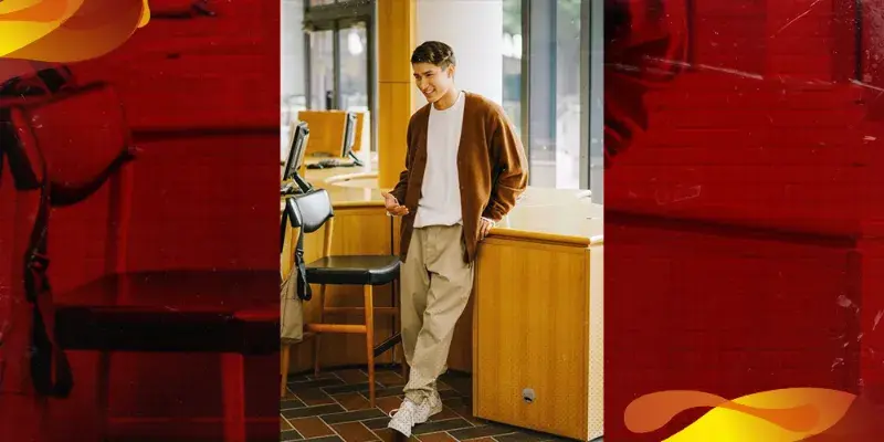 Kalau Lo pengen keliatan lebih rapi tapi nggak terlalu formal, rumus layering bareng cardigan adalah pilihan yang cocok. Layer kaos polos Lo sama cardigan yang simple tapi bikin look keliatan lebih rapi, ditambah celana chino yang nyaman buat konser indoor maupun outdoor. Look ini pas banget buat konser yang lebih intimate dan pastinya masih tetep nyaman buat goyang-goyang kecil.