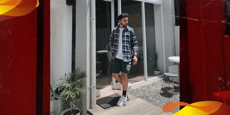 4. Kemeja Pattern + Celana Pendek