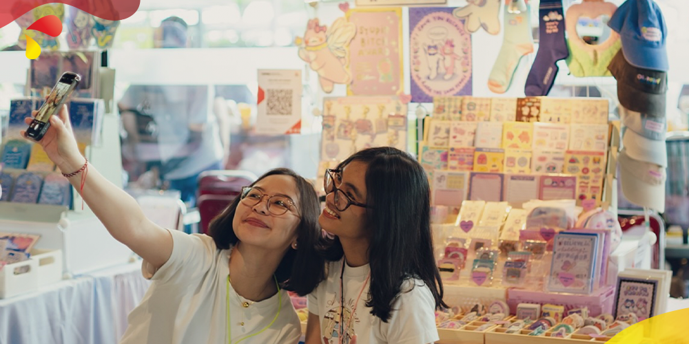 Terakhir, ada Artket – singkatan Art + Market. Ini lebih ke pasar seni kasual ala bazaar. Bayangin aja kayak pasar kaget khusus seni: puluhan booth jual kerajinan tangan, ilustrasi, tote bag indie, pin unik—pokoknya printilan art yang bikin betah muter-muter sambil liat-liat yang dijual di sana.