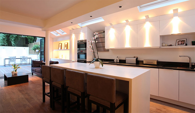 Pencahayaan yang terang, terutama di bagian plafon, wajib diterapkan dalam ruangan dapur. Untuk membuatnya terlihat lebih “chic”, gunakan lampu downlight di kabinet. Efek cahayanya mampu memperindah tampilan kitchen set. Lo juga bisa memasang pendants dengan diffused light yang lembut di atas meja dapur.