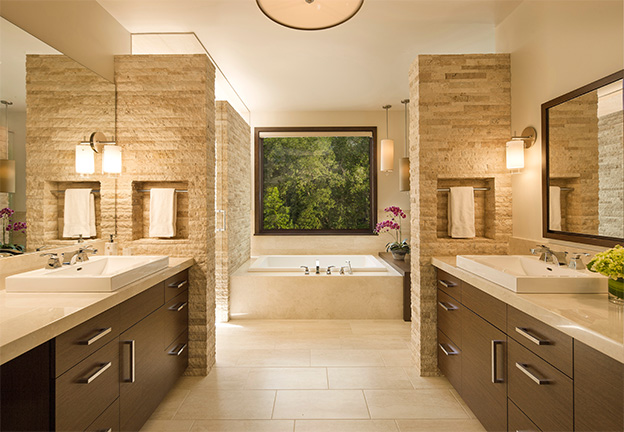 Pencahayaan yang terang sangat diperlukan untuk menciptakan kesan kamar mandi yang bersih. Meski demikian, hindari lampu pijar yang berwarna “cool white”. Kalau terdapat cermin di dalam kamar mandi, lo bisa menggunakan sepasang lampu yang mengapit cermin tersebut. Selain mendramatisir cahaya dalam kamar mandi, penggunaan lampu itu juga bisa memperjelas penampilan lo di cermin.