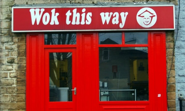 Di Texas juga ada restoran dengan nama yang lucu, yaitu“Wok This Way”. Pemilik Chinese restaurant yang ada di San Antonio ini sengaja memberi nama persis ketika orang China melafalkan kata “work” menjadi “wok”. Mungkin supaya lebih menjelaskan kekentalan aksen Cina di tengah kota Texas. Wok This Way sendiri berhasil memberikan warna baru di San Antonio.