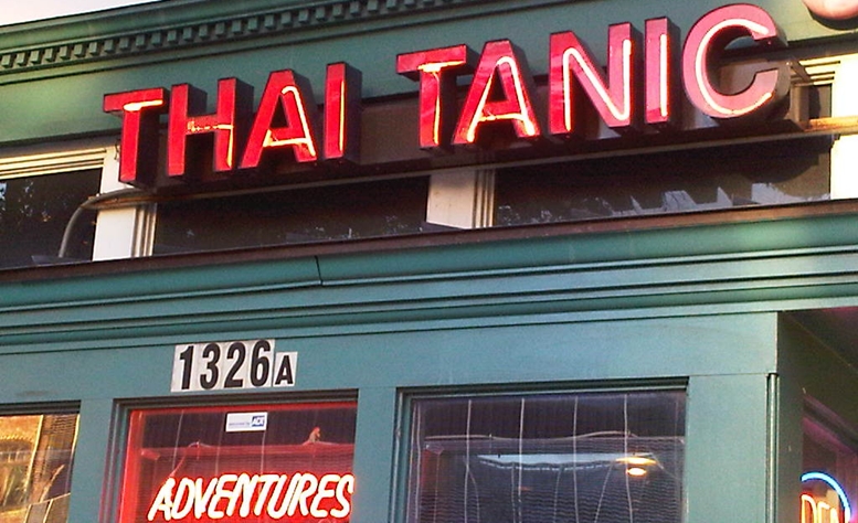 Thai Tanic Restaurant yang berada di Washington DC ini berdiri sejak bulan Maret 2001 lalu. Restoran ini sebenarnya adalah restoran Thailand. Pemiliknya sengaja memberikan nama unik supaya pengunjung tertarik untuk datang. Restoran tersebut, menurut si pemilik, berada di jalan yang nggak ramai, namun memiliki potensi banyak pengunjung. Oleh karena itu, nama restoran dibuat semenarik mungkin supaya pengunjung penasaran tentang masakan yang ada di restoran ini.