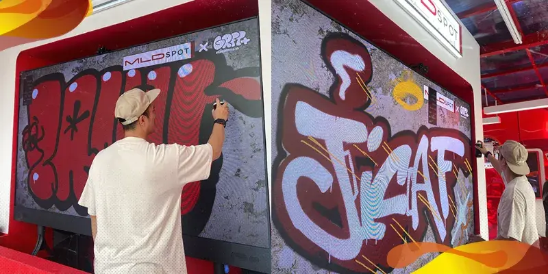 Ada Zany atau sering dikenal dengan The professor Zany13, juga turut ngasih keseruan di JICAF x MLDSPOT 2024 dengan nampilin skillnya lewat live graffiti! Seniman graffiti dan mural yang satu ini, terkenal dengan karyanya yang memiliki khas hip hop yang unik dan kece!