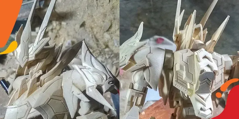Lo bayangin aja, Gundam kan perintilannya banyak banget tuh, udah gitu keliatannya kecil-kecil dan ribet banget. Kalo dirakit pake potongan yang udah jadi, satu action figure aja bisa lama banget proses pengerjaannya. Nah, kalo Gundam berbahan kayu ini, pengeraannya bisa makan waktu beberapa minggu buat selesai. Kebayang kan, betapa sabarnya si perajin ini?