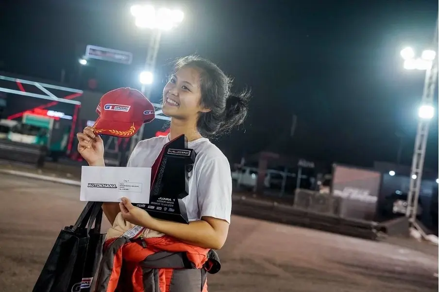 Sebagai salah satu pembalap papan atas, tentunya doi gak bakal ngelewatin kesempatan ikut Autokhana 2024. Pada putaran ketiga kemarin yang digelar di Mandala Krida Yogyakarta, 10 Agustus 2024, doi berhasil nyabet gelar juara satu di Kejuaraan Nasional Wanita dengan waktu 00:41.598!