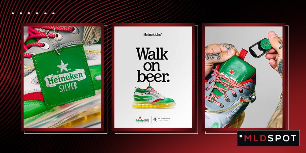Heineken berhasil menggaet salah satu sneaker virtuoso yang sedang naik daun saat ini, yaitu Dominic Ciambrone atau biasa disebut juga sebagai The Shoe Surgeon, untuk membuat sneakers that will have you “walking on beer”. Kolaborasi keduanya ini kemudian dinamakan dengan Heinekicks. Sounds good, Bro!