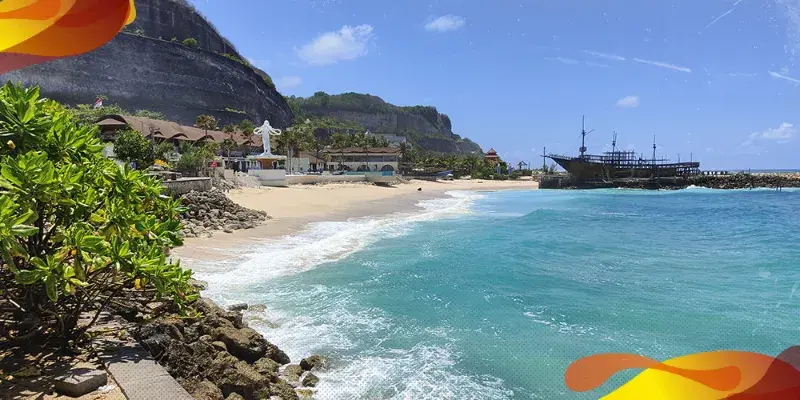 Pasirnya putih dan halus banget, suasananya juga lebih tenang dibandingin pantai-pantai lain di area Nusa Dua. Cocok buat Lo yang pengen berenang atau sekadar leyeh-leyeh di temenin air pantai dan angin sepoi-sepoi.