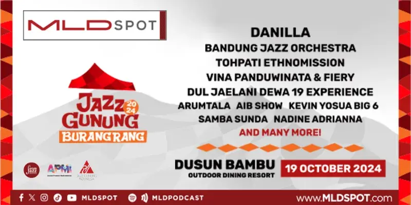 Yes, pada 19 Oktober 2024, Dusun Bambu bakal ada event Jazz Gunung x MLDSPOT yang dijamin bikin pengalaman healing Lo makin asik! Terlebih lagi line up-nya juga seru-seru banget banget, Bro! Mulai dari Danilla, Dul Jaelani Dewa 19 Experience, Tohpati Ethnomission, Ear Sun, dan lain-lain.