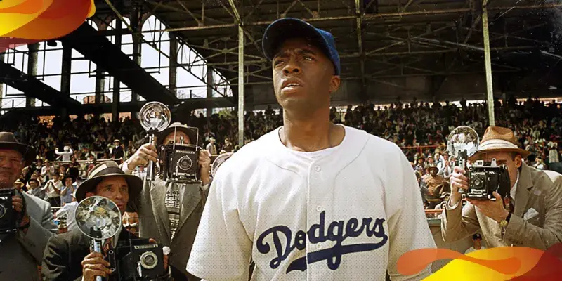 Film ini jadi salah satu pembuktian kalau Chadwick nggak cuma bisa jadi superhero, tapi juga jadi sosok inspiratif di dunia nyata. Di 42, Chadwick berperan sebagai Jackie Robinson, pemain baseball Afrika-Amerika pertama yang masuk liga utama. Di film ini Lo bakal ngerasain gimana perjuangan Jackie lawan rasisme, dan Chadwick berhasil ngehidupin karakter Jackie dengan sangat powerful. Lo bakal ngerasa terinspirasi banget pasti!