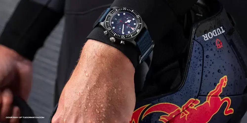 Selain skena yacht racing yang bikin deg-degan, Tudor juga ngegabungin color scheme Alinghi Red Bull Racing yang distinct banget sama warna merah hitamnya. Tapi, mereka tetap stay loyal sama cerita awal brand, yaitu jam tangan buat anak laut.