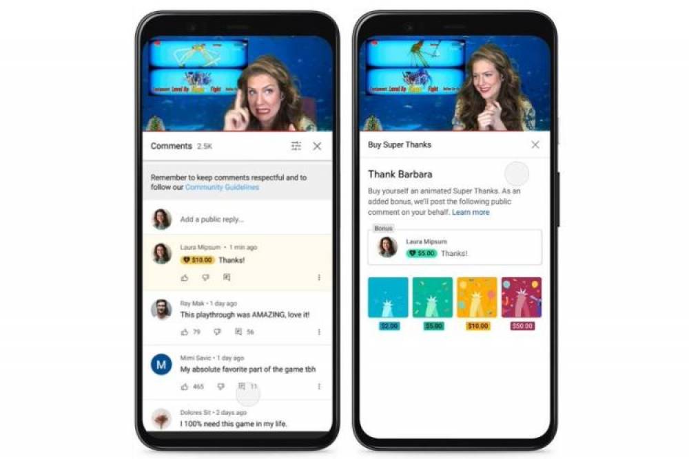Ikon tersebut nantinya akan berada di antara ikon download dan save yang terdapat di bawah setiap video YouTube. Dengan mengklik ikon itu, akan ada pilihan seberapa banyak jumlah uang yang akan lo berikan, mulai dari US$2, US$5, US$10, hingga US$50.