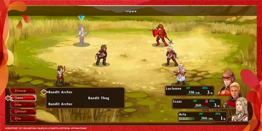 Soal gameplay, Celestian Tales: Old North mirip sama game RPG klasik sebangsa Dragon Age, Suikoden, atau Final Fantasy kalau lo familiar sama ketiganya. Tapi, justru aspek ini yang benar-benar bikin game ini kerasa banget sebagai surat cinta buat JRPG populer di tahun 80-an sama 90-an! Of course, ada pembeda dari segi battle-nya yang bikin game ini lebih unik. Kayak apa aja contohnya?