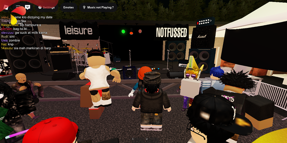 Interaksi dengan penonton jelas beda jauh dibanding crowd nyata. Kalau di dunia asli ada teriakan, tepuk tangan, sampai moshing, di Roblox semuanya hadir lewat ekspresi avatar dan chat box. Meski begitu, mereka tetap merasa “connected,” seperti lagi main game bareng temen tapi sambil konser.